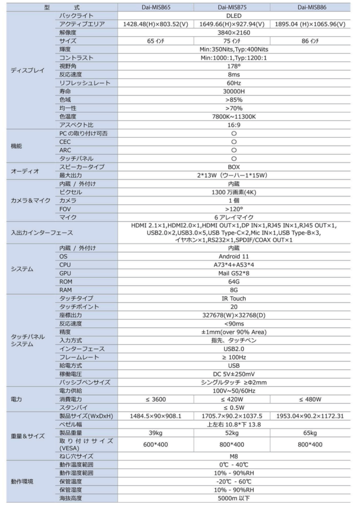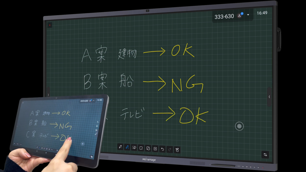 実際のホワイトボードと同じような書き心地 ◆65/75/86型 4Kモニター