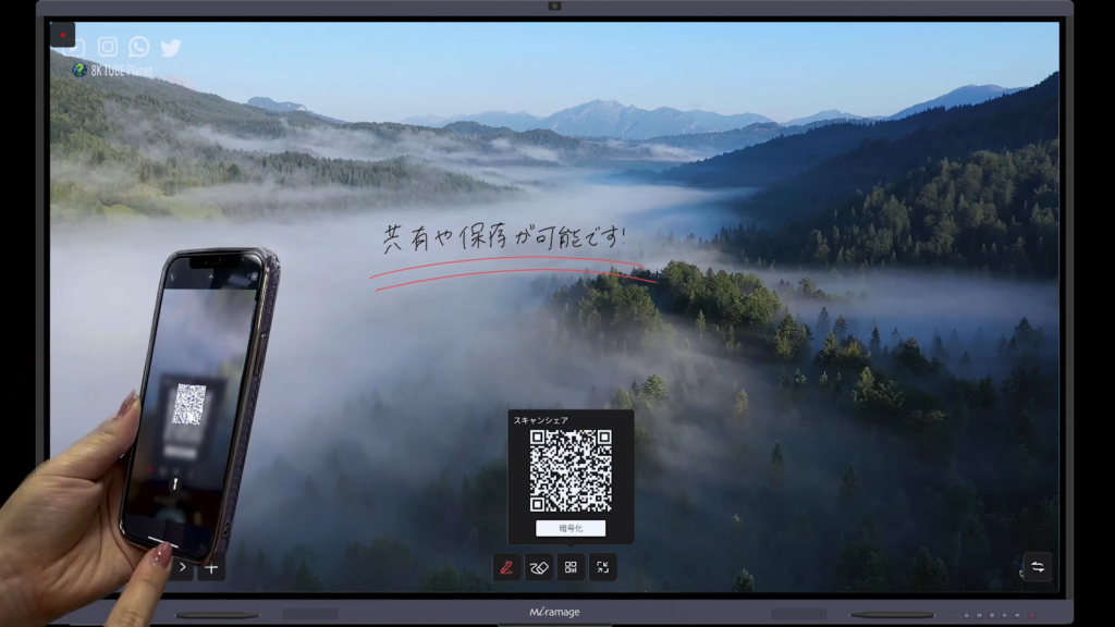 QRコードを使用し、お手持ちのデバイスから簡単にホワイトボードへ挿入が可能