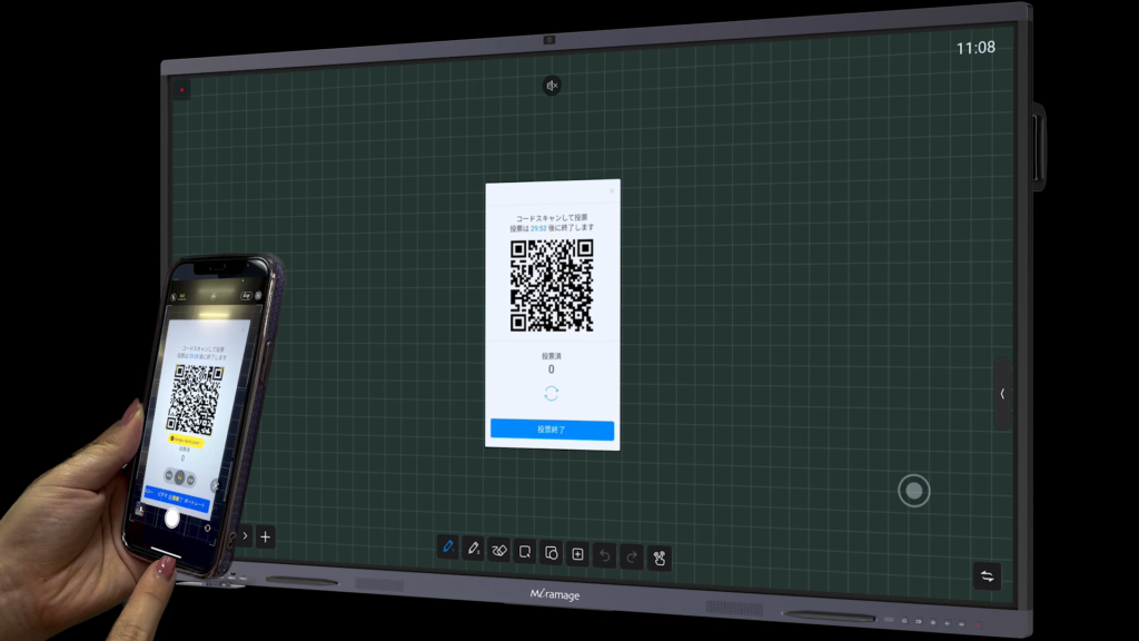 QRコードをお手持ちのデバイスで読み取りその場で投票、グラフの結果を表示
