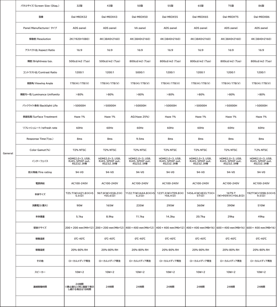 ◆インターフェース:HDMI2.0×3、USB、RJ45、SPDIF out、RS232、IR等