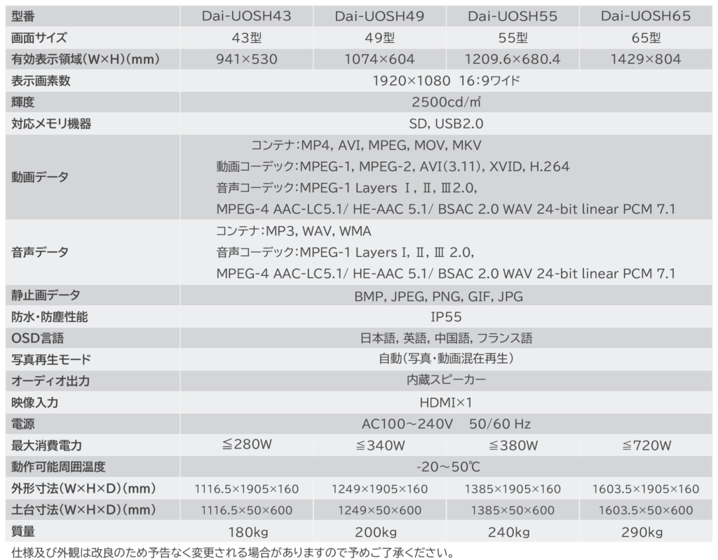 Dai-UOSH Dai-UOSH 横型屋外用キオスクタイプ液晶デジタルサイネージ