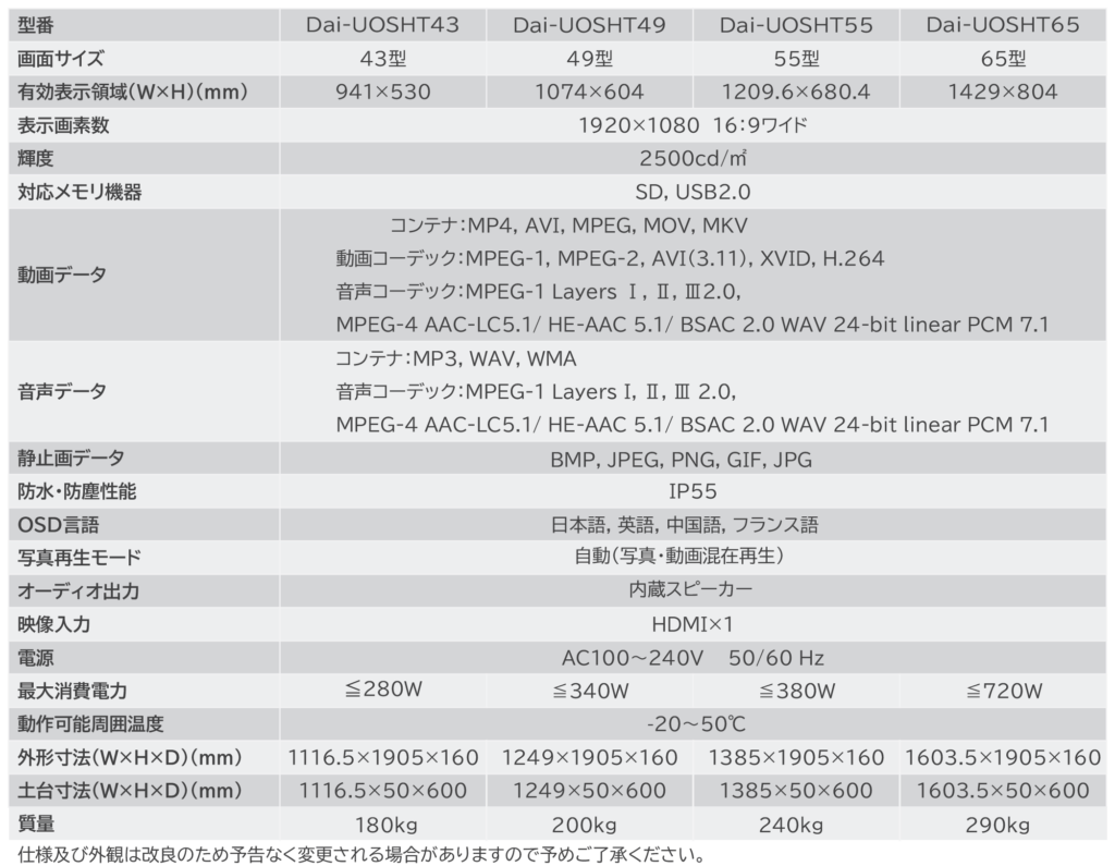 Dai-UOSHT Dai-UOSHT 屋外用キオスクタイプタッチパネル搭載型デジタルサイネージ