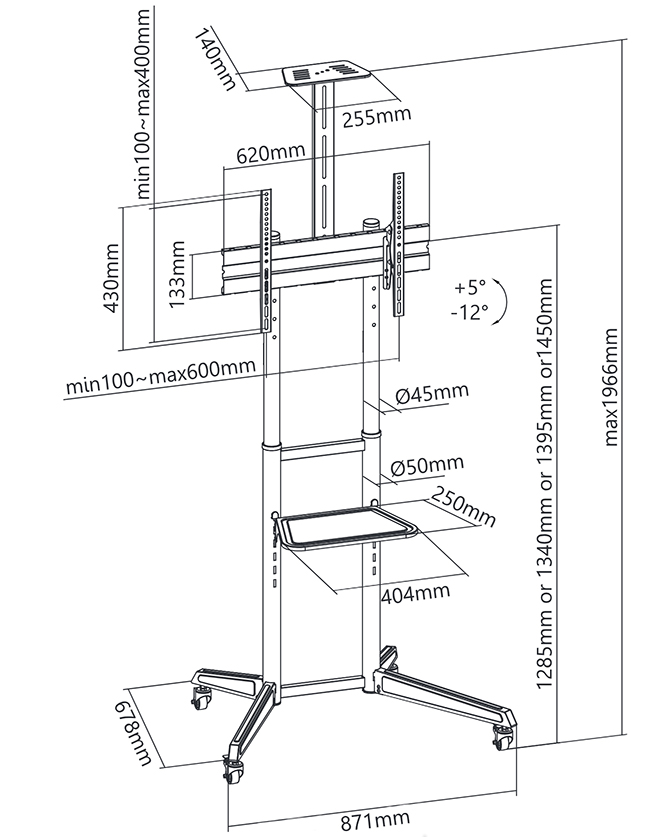 | 高さ調節 | 1285mm、1340mm、1395mm、1450mm |