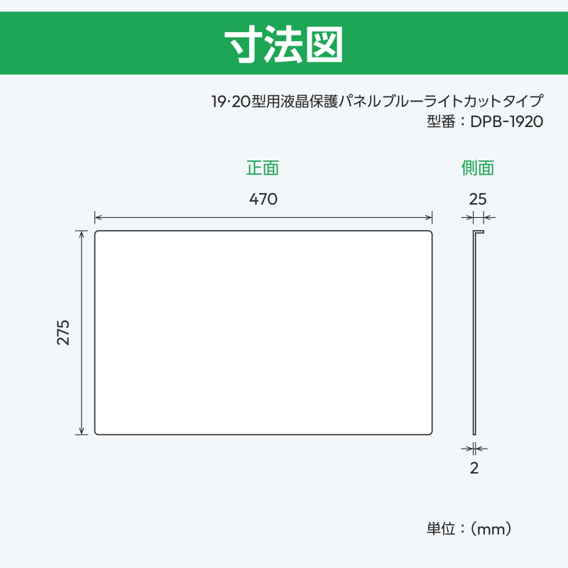 | 19・20型 | DPB-1920 | (W)470mm×(H)275mm×(D)25mm (t)2.0mm | – |