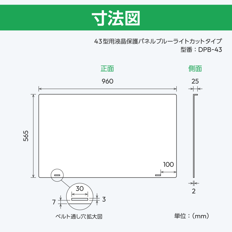 | 43型 | DPB-43 | (W)960mm×(H)565mm×(D)25mm (t)2.0mm | 140cm×2 |