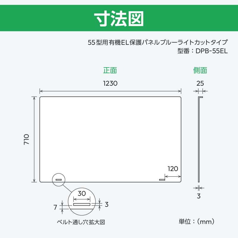 | 55型 | DPB-55EL | (W)1230mm×(H)710mm×(D)25mm (t)3.0mm | 150cm×2 |