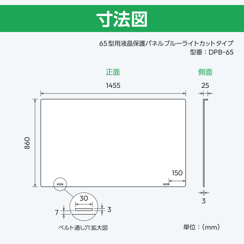 | 65型 | DPB-65 | (W)1455mm×(H)860mm×(D)25mm (t)3.0mm | 190cm×2 |