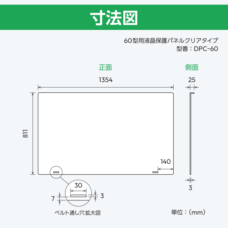 | 60型 | DPC-60 | (W)1354mm×(H)811mm×(D)25mm (t)3.0mm | 180cm×2 |
