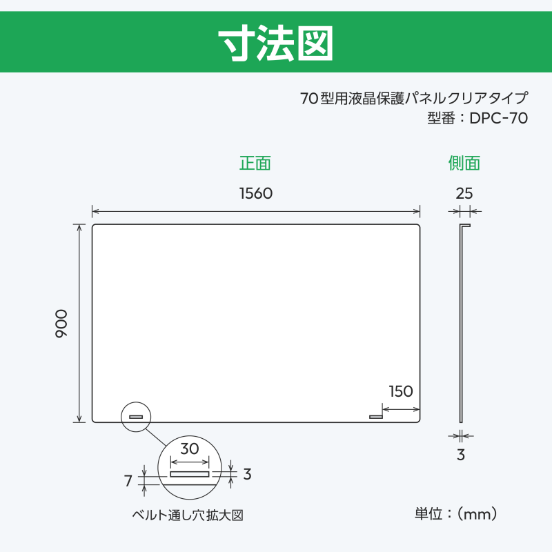 | 70型 | DPC-70 | (W)1560mm×(H)900mm×(D)25mm (t)3.0mm | 200cm×2 |