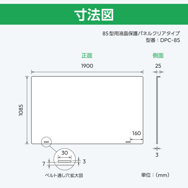 | 85型 | DPC-85 | (W)1900mm×(H)1085mm×(D)25mm (t)3.0mm | 240cm×2 |
