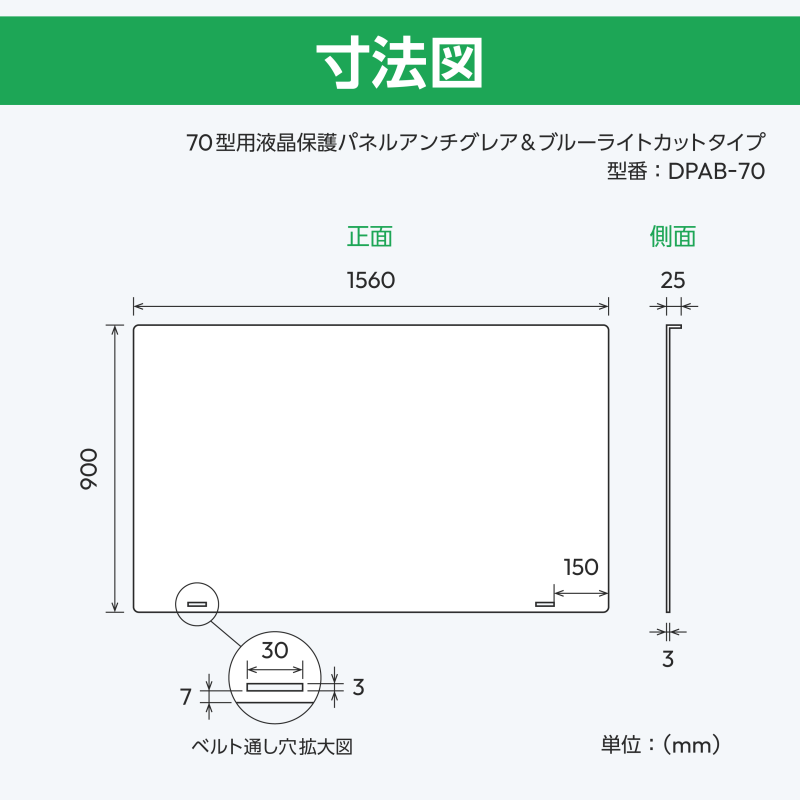 | 70型 | DPAB-70 | (W)1560mm×(H)900mm×(D)25mm (t)3.0mm | 200cm×2 |